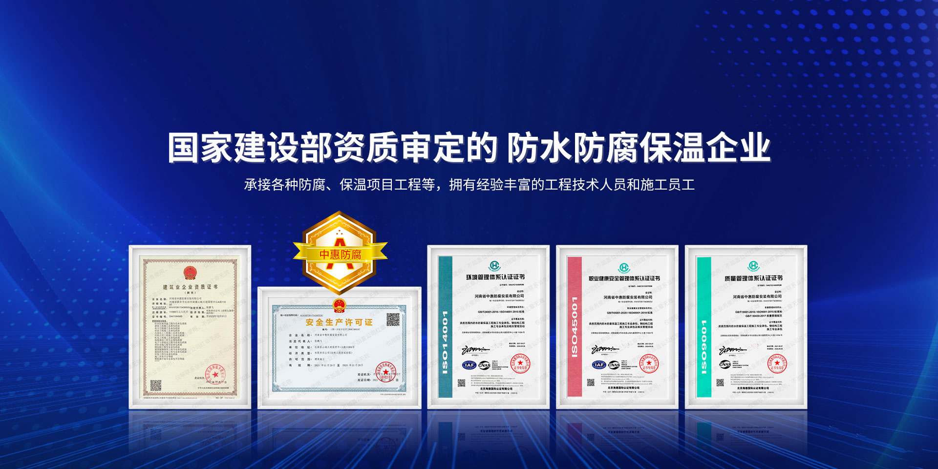 公司經營范圍:防水防腐保溫工程;消防設施工程;建筑裝修裝飾工程;建筑機電安裝工程;電力工程;建筑工程;石油化工工程;工業清洗工程;油罐清洗工程;鋼結構工程;環保工程;模板腳手架工程;電纜防火封堵、防污閃噴涂、外墻外保溫工程;各類施工勞務作業;設備維修、船舶鉚焊、涂裝;電力工程材料、建材、防水材料、防火材料、防腐保溫材料銷售,并相繼通過了GB/T19001-2008idtISO9001:2008GB/T50430-2007質量管理體系認證證書。GB/T24001-2004idtISO14001:2004環境管理體系認證證書。GB/T28001-2011idtOHSAS18001:2007職業健康安全管理體系認證證書。公司是中國防腐蝕于防護協會、中國施工企業管理協會、電力協會和中國鋼結構防水協會會員單位。 公司的經營業務涵蓋了石油、化工、電力、冶金、煤炭、船舶、國防、燃氣、水利、環保、交通運輸、航空及國防軍工和輕紡市政等行業的防腐保溫絕熱設備。鋼結構安裝、防火、防水、金屬噴鍍、聚脲噴繪、陰極保護、防滲透堵漏、玻璃鋼及各種磚版材料襯里、橡膠襯里、煙氣硫和耐酸溶劑腐蝕等工程施工。公司連續十年榮獲“省市先進施工企業”“安全生產先進單位”“重合同,守信用企業”和“AA***資質企業”的稱號。2000年被命名為市級文明單位,2002年被國家工商行政管理局命名為“重合同,守信用的企業”、被中國工業防腐蝕技術協會命名為“防腐蝕企業,能源節約及環境保護領域有豐富的經驗和***的業績。工程一次交驗合格率100%。其中攀枝花鋼鐵公司煉鐵廠四號高爐及熱風爐防腐工程、上海寶鋼公司煤氣柜防腐工程、撫順石油一廠裝置防腐項目、齊魯石化公司稀烴廠高塔防腐工程、吉林化學工業公司煉油廠油罐防腐工程、天津石化熱電廠六號爐頂棚聯絡管保溫工程、大慶油田(太倉)力神泵業工程、中國化學工程第十一建設工程、中原油田勘探局工程、中國石化銷售有限公司華北分部、魯皖輸油管道工程、貴州開磷息烽合成氨工程、陜西黃陵煤化工程、中國石油天然氣西部管道塔里木輸油工程、邯鋼集團邯寶鋼鐵公司煉鐵工程、德州供電工程、吉寶(南通)船廠工程,偃師華潤熱力工程、鄭州熱力總公司。 河南省中惠防腐安裝有限公司愿以豐富的施工經驗,***的技術,***的設備,***的管理,***的服務,竭誠為國內外廣大的用戶提供***滿意、******的工程作品。 我公司愿與國內外同仁一道,團結協作,共同推進防腐蝕行業發展! 公司地址:河南省長垣縣建設路北段360號 固定電話:0373-8866488 郵編:453400 網址:http://www_zhff_com_cn.yafenhui.com